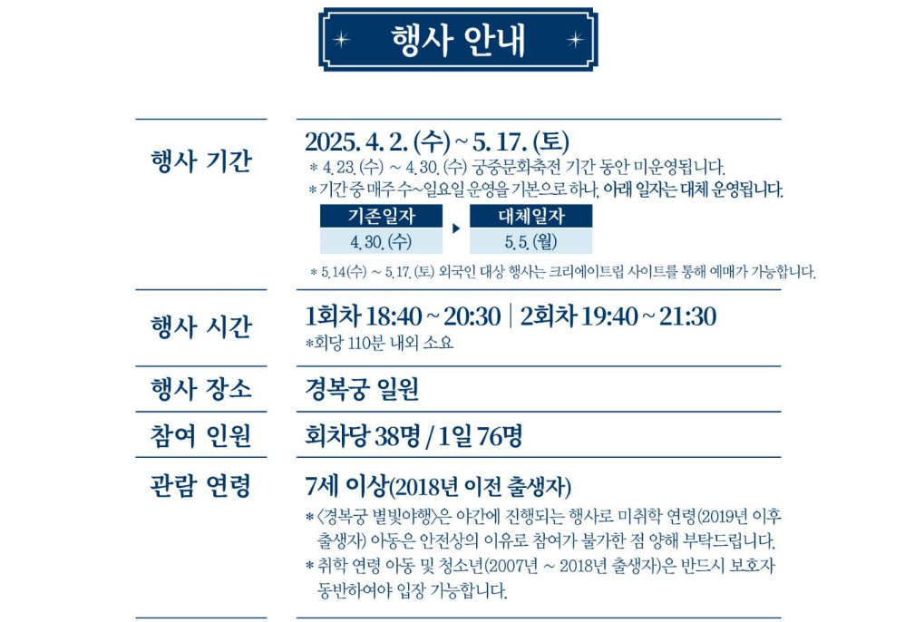 경복궁 야간 개장 2025 일정은?