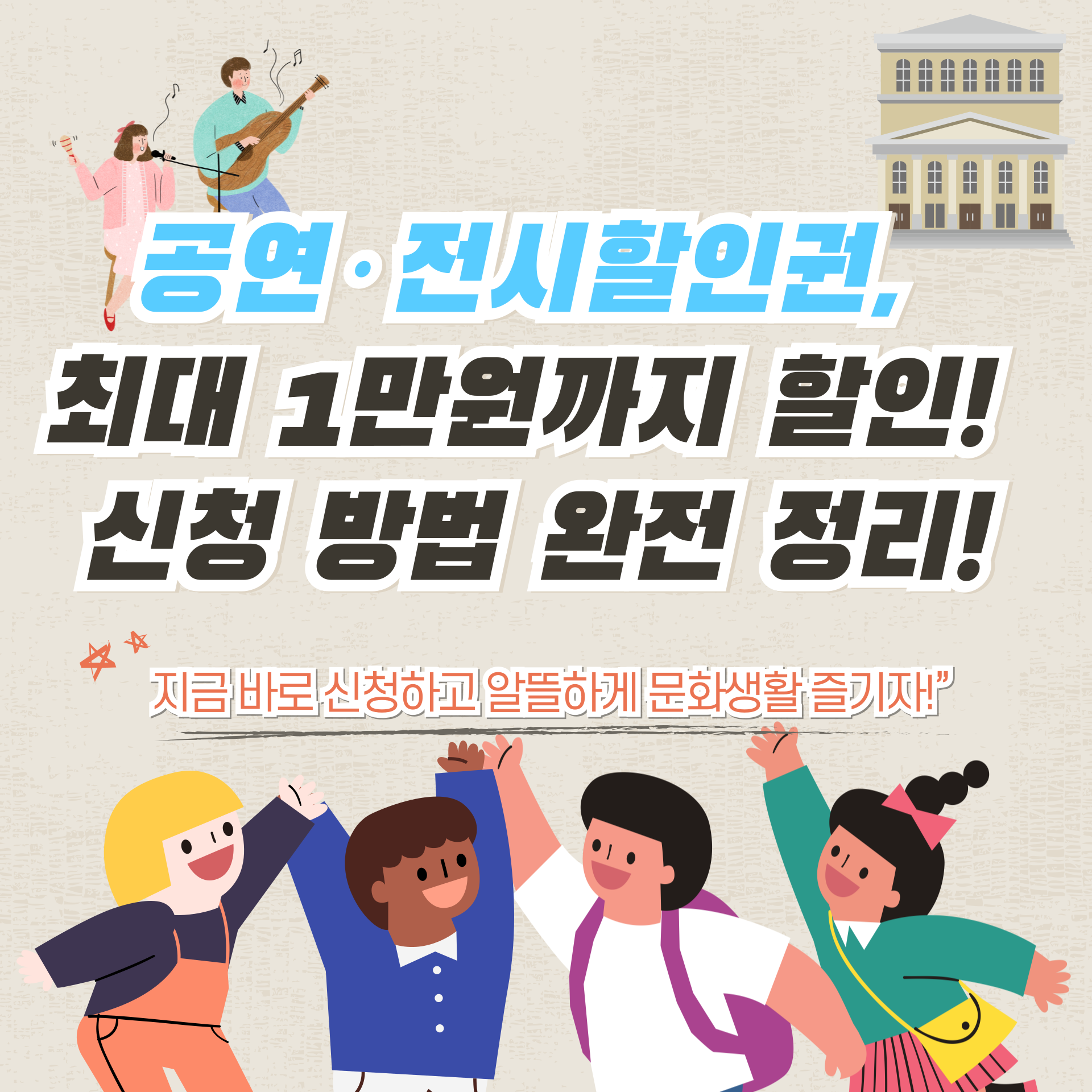 할인권은 선착순으로 발급되므로, 빠르게 신청해야 할 수 있어요. 원하는 공연이나 전시가 있다면, 지금 바로 신청하고 할인 혜택을 챙기세요! 놓치지 않도록 서두르는 게 좋아요.