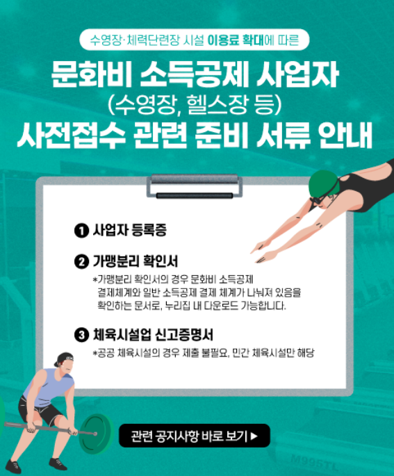 - 2025년 7월 이전에 결제한 수영장, 체력단련장 이용권은 공제 불가하므로 적용 시기를 반드시 확인하세요.