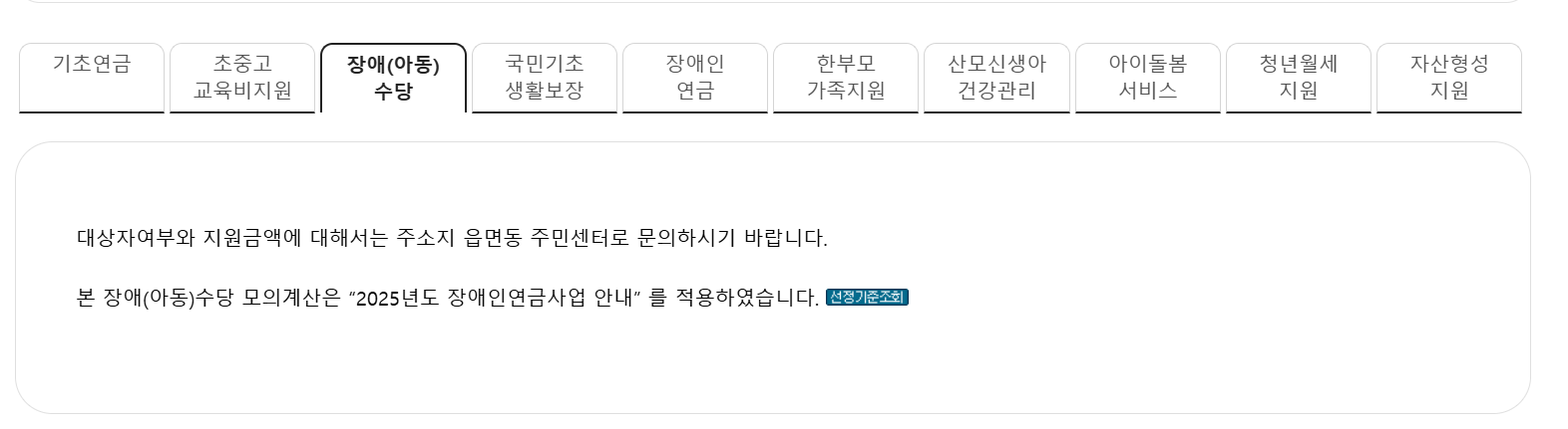 장애(아동) 수당은 복잡해 보이지만, 기준만 잘 파악하고 모의계산을 통해 사전에 확인하면 충분히 신청 가능한 제도입니다.