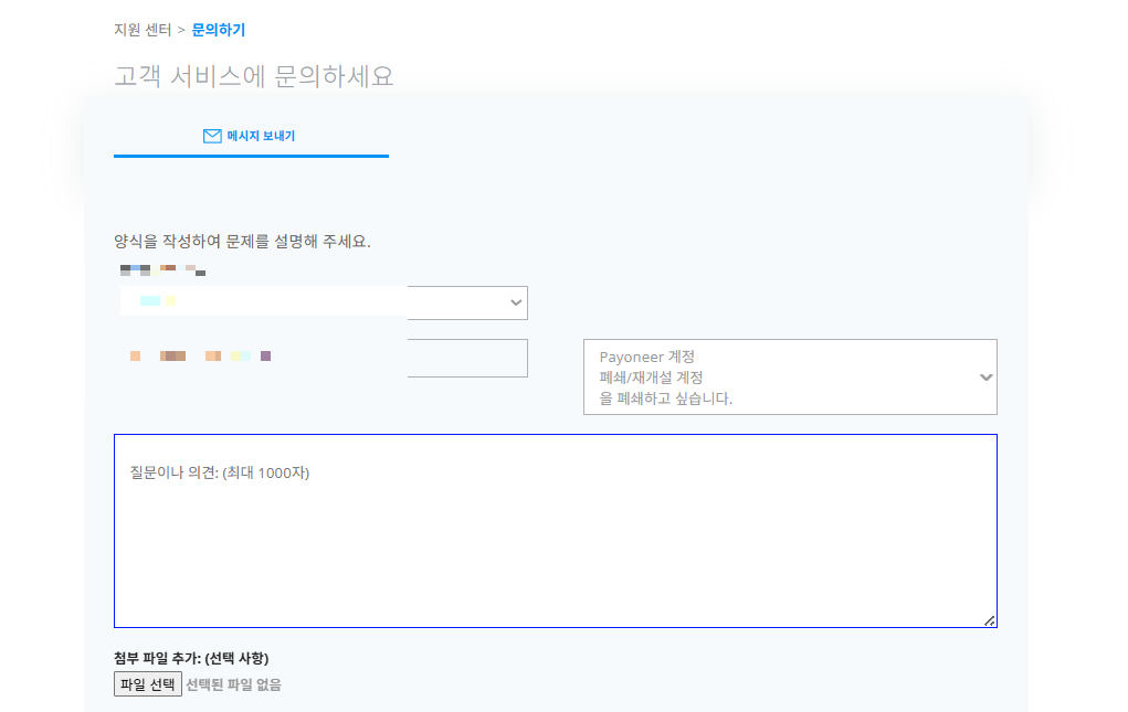 모든 정보를 제출하면 페이오니아 고객센터에서 요청을 검토합니다.