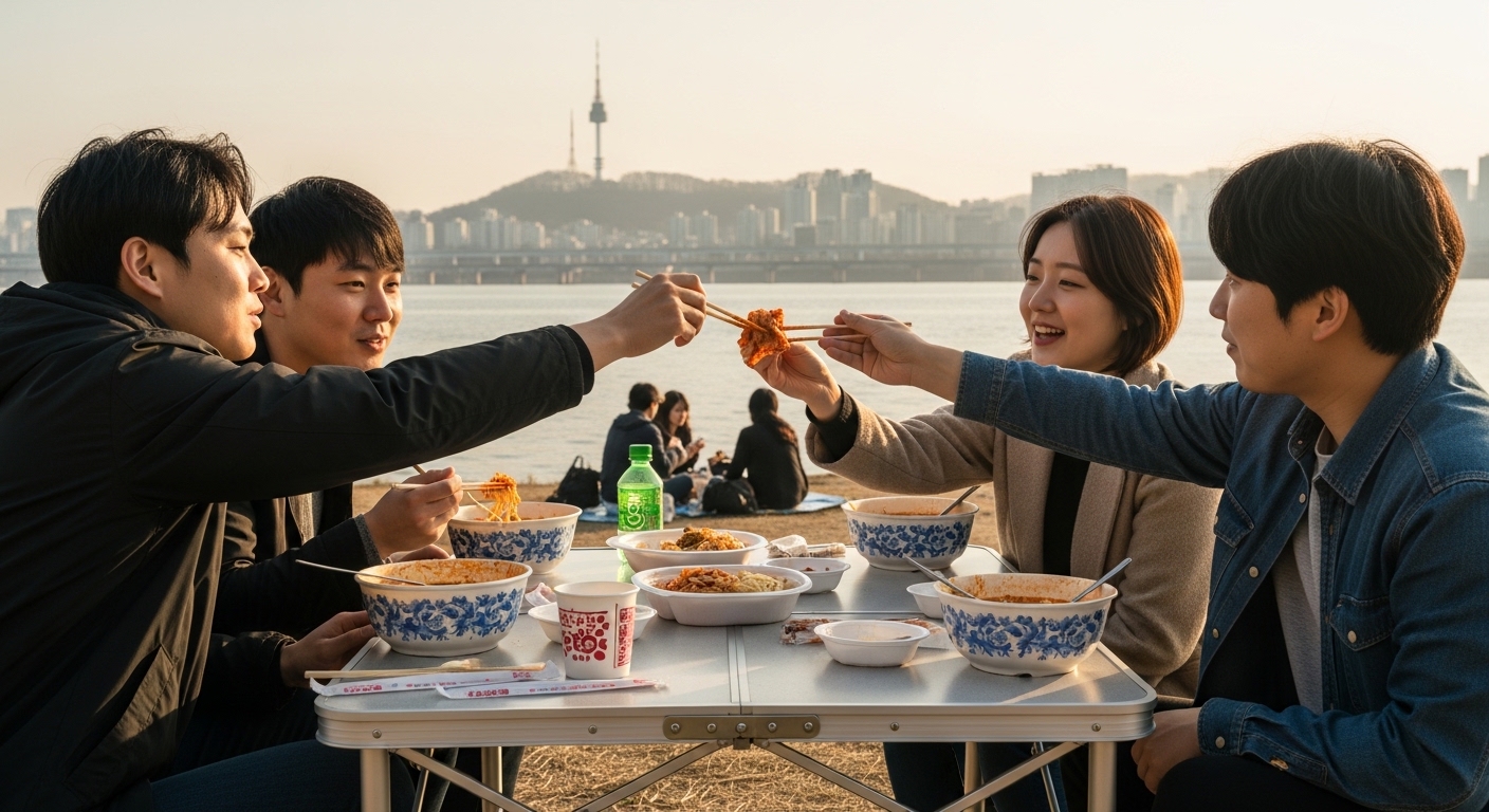 한강은 서울 시민들에게 휴식, 산책, 데이트, 소풍 같은 이미지가 강하잖아요. 그 공간에서 먹는 라면은 자연스럽게 “맛있는 추억”으로 저장돼요.