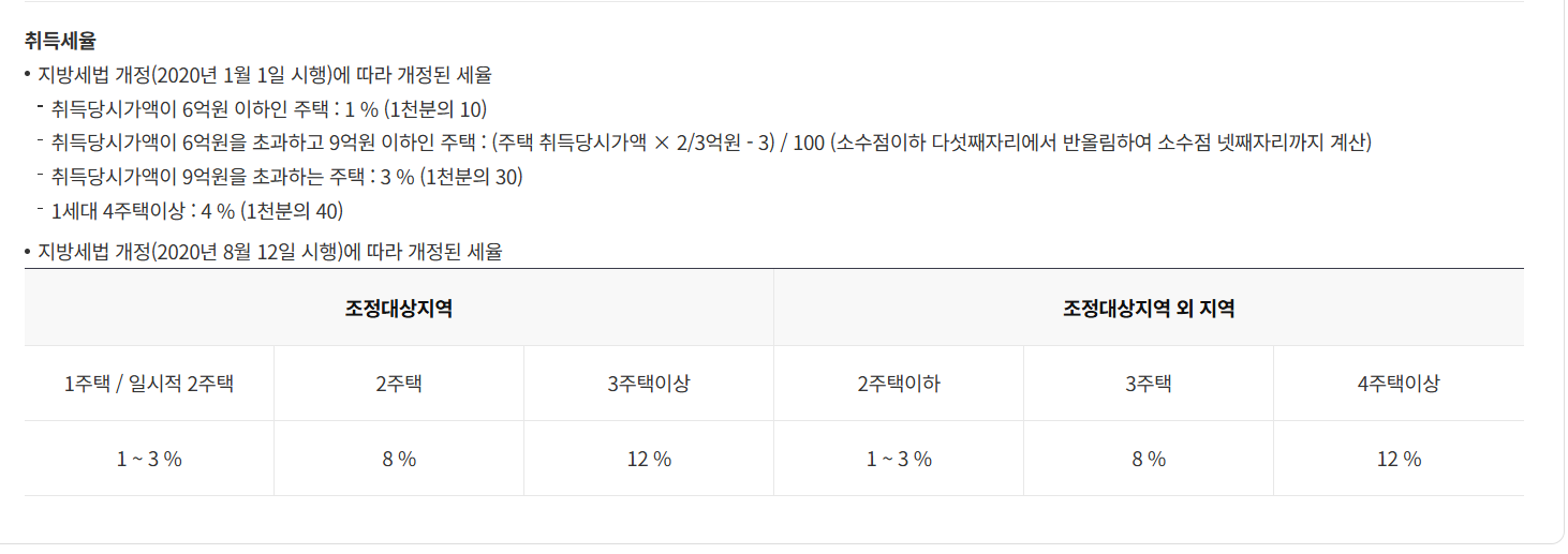 - 조정대상지역 내 2주택 이상은 중과세율 적용