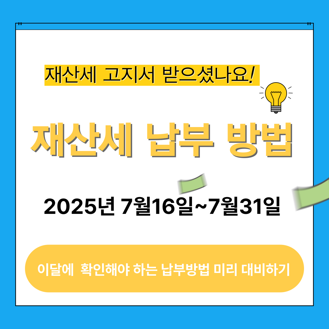 이번 글에서는 2025년 7월 재산세 납부 일정부터 감면 대상 확인법, 납부 방법까지