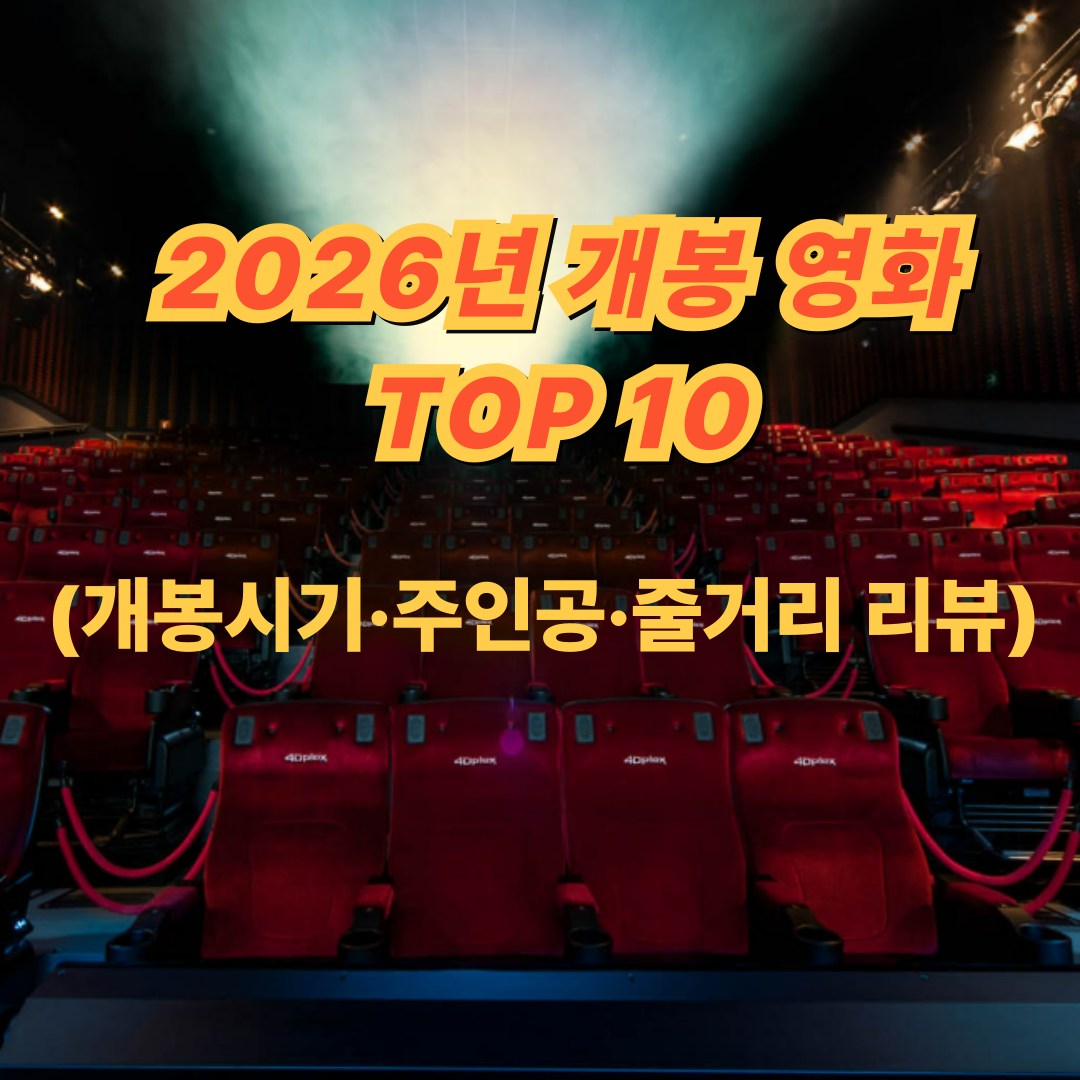 2026년 개봉 영화 기대작 TOP10을 개봉시기·주인공(주연)·스포 최소 줄거리·관람 포인트로 한눈에 정리했습니다. 한국영화부터 해외 블록버스터까지 취향별 추천으로 확인하세요!